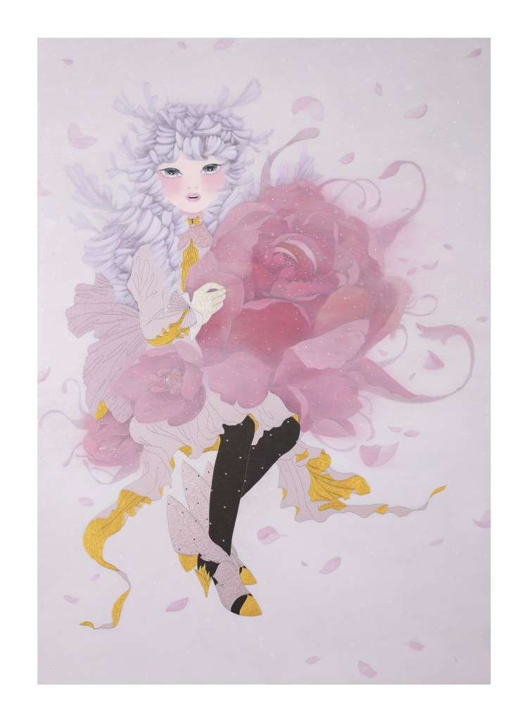 Deeply appreciated by the senior collectors, CHIU accepted the invitation of artist residency in Seoul from Korean prominent gallery Gana Art, to combine different cultures and thoughts in Asia. With keen eyes, he coordinates perspectives and discoveries for a profound observation of human minds, to precisely depict the unique heart movement for warm emotions, and create a surreal girlish inner world of sweet and fantastic images. His painting conveys the happiness from love and hopes. The girl in painting of her twinkling big eyes always stares into the world, and in the eyes is her inner universe triggering the subtle moves. The wishful world is set up with warm colors where the girl lives in as the tailored stage to deliver happiness. Sometimes the girl holds flowers, macarons, gift boxes or delicate desserts to express the heartfelt joyful wishes. The girl is the character to send blessings; she embraces pleasurable gift with the expectation to warm your heart and bring you the everlasting beautiful mood. Here it invites you to be brimming over with love, enchanting hopes, cheering happiness and the scent of blessing.